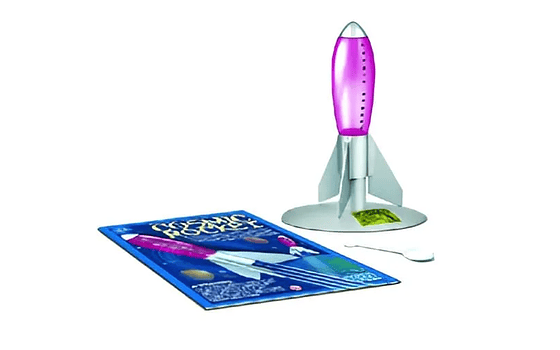 Con este kit de ciencia los niños podrán formar un cohete que vuela hasta 15 metros gracias a la explosión causada por la mezcla de vinagre y bicarbonato de sodio.