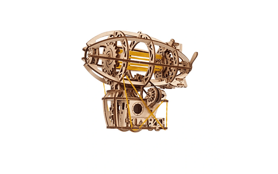 Este mini-dirigible refleja la sensibilidad retro de estilo Steampunk tan característica de Ugears, con una cabina del estilo de la de un remolcador y con porche trasero, un motor de gomas elásticas con interruptor Start/Stop, hélices accionadas por motor, un volante giratorio, estabilizadores móviles y unas ruedas, que permiten que la maqueta pueda moverse en una superficie plana hasta 2 m hacia delante y atrás, lo que le proporciona este toque especial del movimiento mecánico.