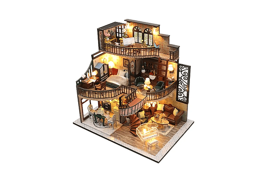 El set incluye todo lo necesario: Pegamentos, Luces LED y elementos de bricolaje (solo las pilas no están incluidads).
